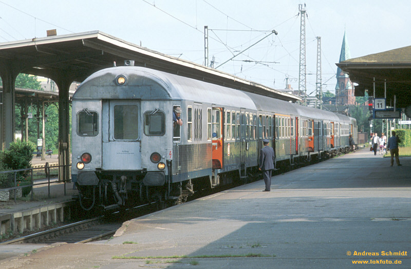 Kleine Geschichte zu dem rechtsstehenden Bild: am 21.07.2001 war mal wieder einiges zur Loveparade nach Berlin unterwegs, insbesondere 103er waren als Zugloks vorgesehen. Einen dieser Züge bespannte 103 170, die in Gleis 11 eine Überholung/Kreuzung abwarten musste. Zu Gleis 12 verwehrte eigentlich ein Geländer den Ausstieg, dennoch stiegen plötzlich einige anscheinend leicht desorientierte Personen aus dem Zug. Da das etwa in Höhe der Beschilderung “Lehrte” erfolgte, vermute ich stark, dass die Meute etwas “zugedröhnt” war und sich in Berlin am Lehrter Bahnhof wähnte - zumindest fuhr der Zug ohne sie weiter nach Berlin....